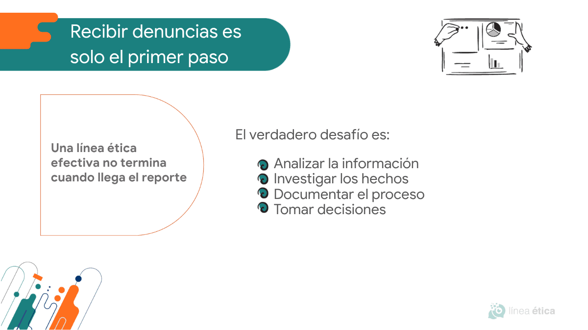 A partir de nuestra experiencia, sabemos que una línea ética efectiva no termina en la recepción del reporte, sino en la capacidad de transformarlo en una investigación sólida y en decisiones concretas.
