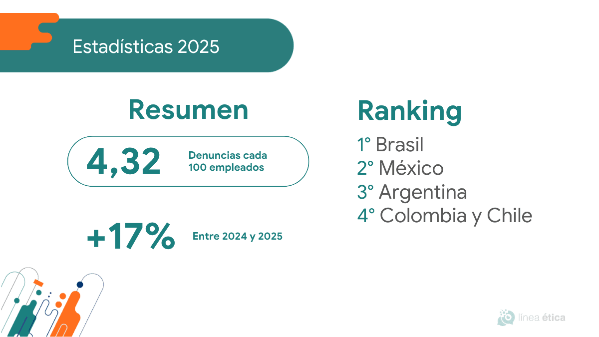 De acuerdo con los datos analizados por Resguarda, las organizaciones de Latinoamérica registraron en promedio 4,3 denuncias por cada 100 empleados durante 2025.